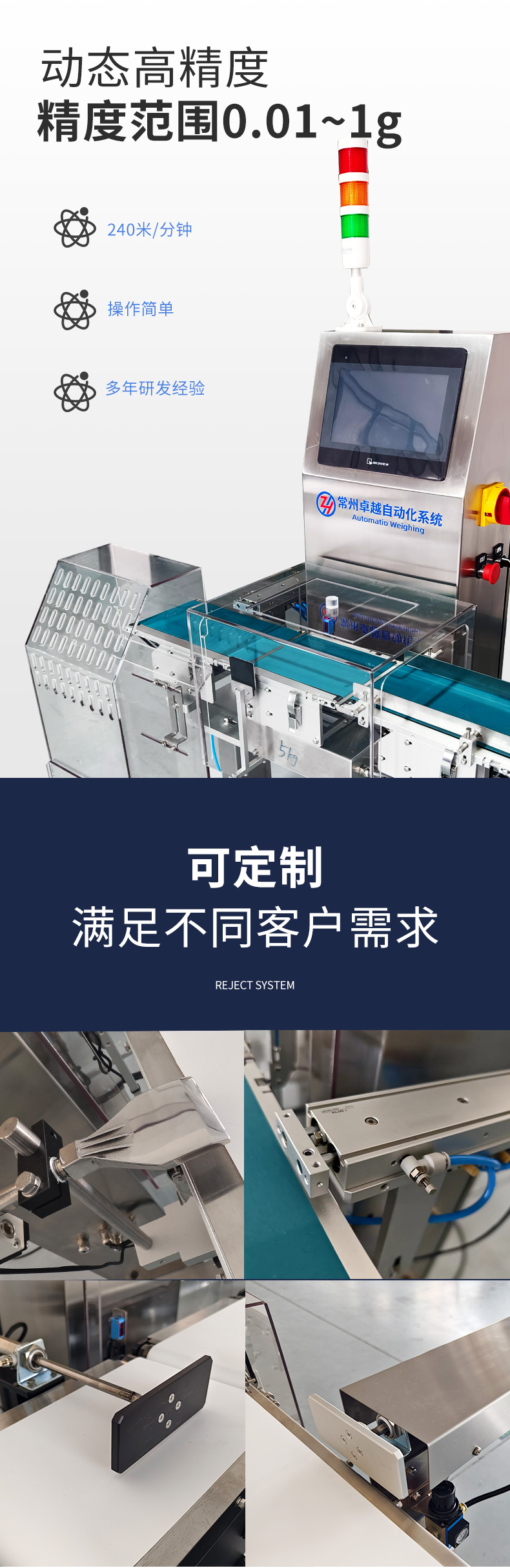 • 產(chǎn)品描述:【常州卓越自動(dòng)化系統(tǒng)】是在線檢重秤,高精度檢重秤,食品檢重秤,在線稱重設(shè)備,重量選別機(jī),多通道檢重秤生產(chǎn)廠家,歡迎來詢!19905190705
